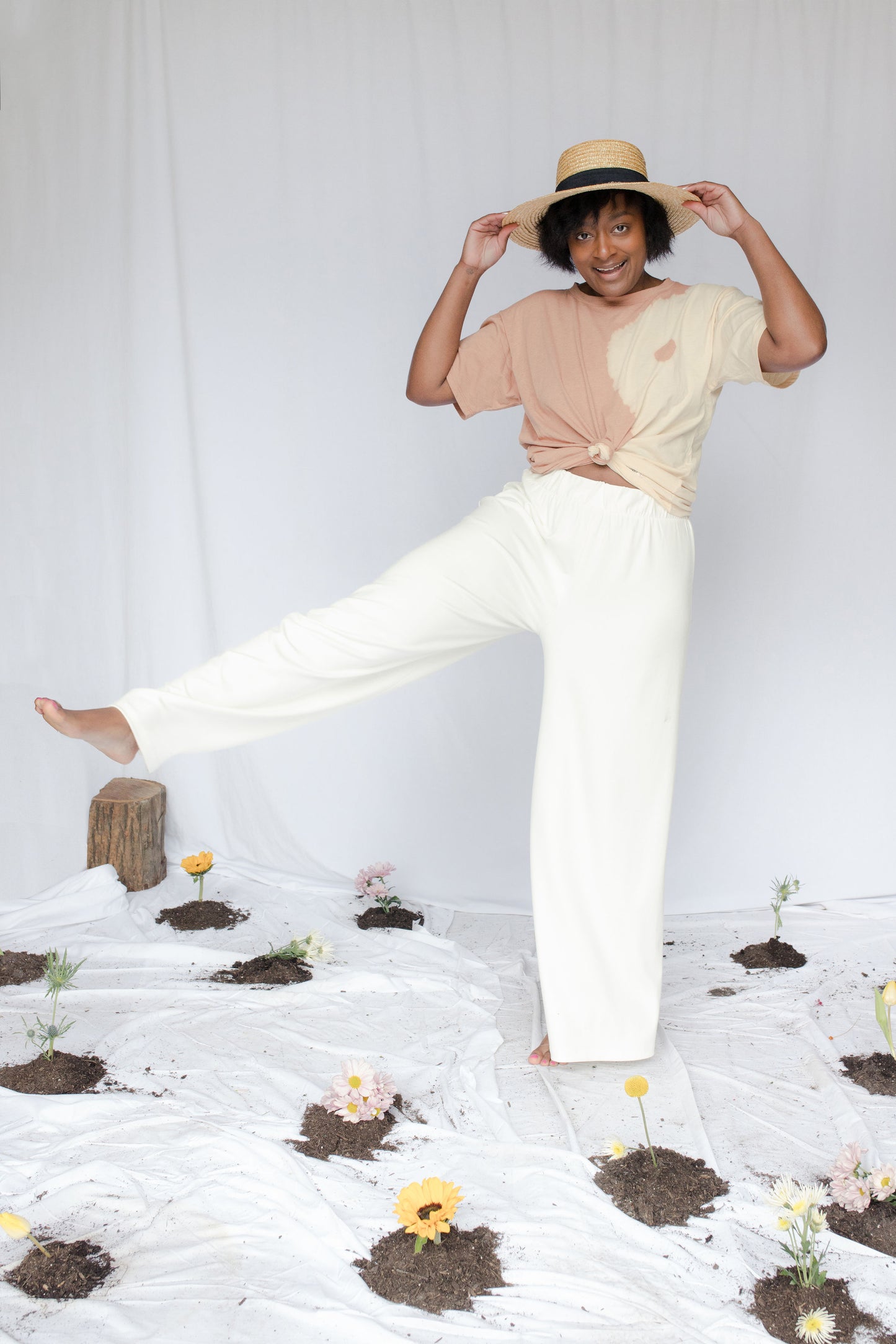 The Georgia Pant is a wide leg soft pant featuring an elastic waistband.